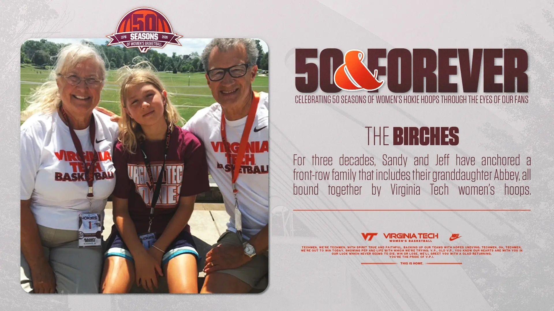 🔼 50 & Forever. Long before Virginia Tech women's basketball saw sold-out crowds or gained national recognition, dedicated fans like Jeffrey and Sandy Birch were turning the program into family.