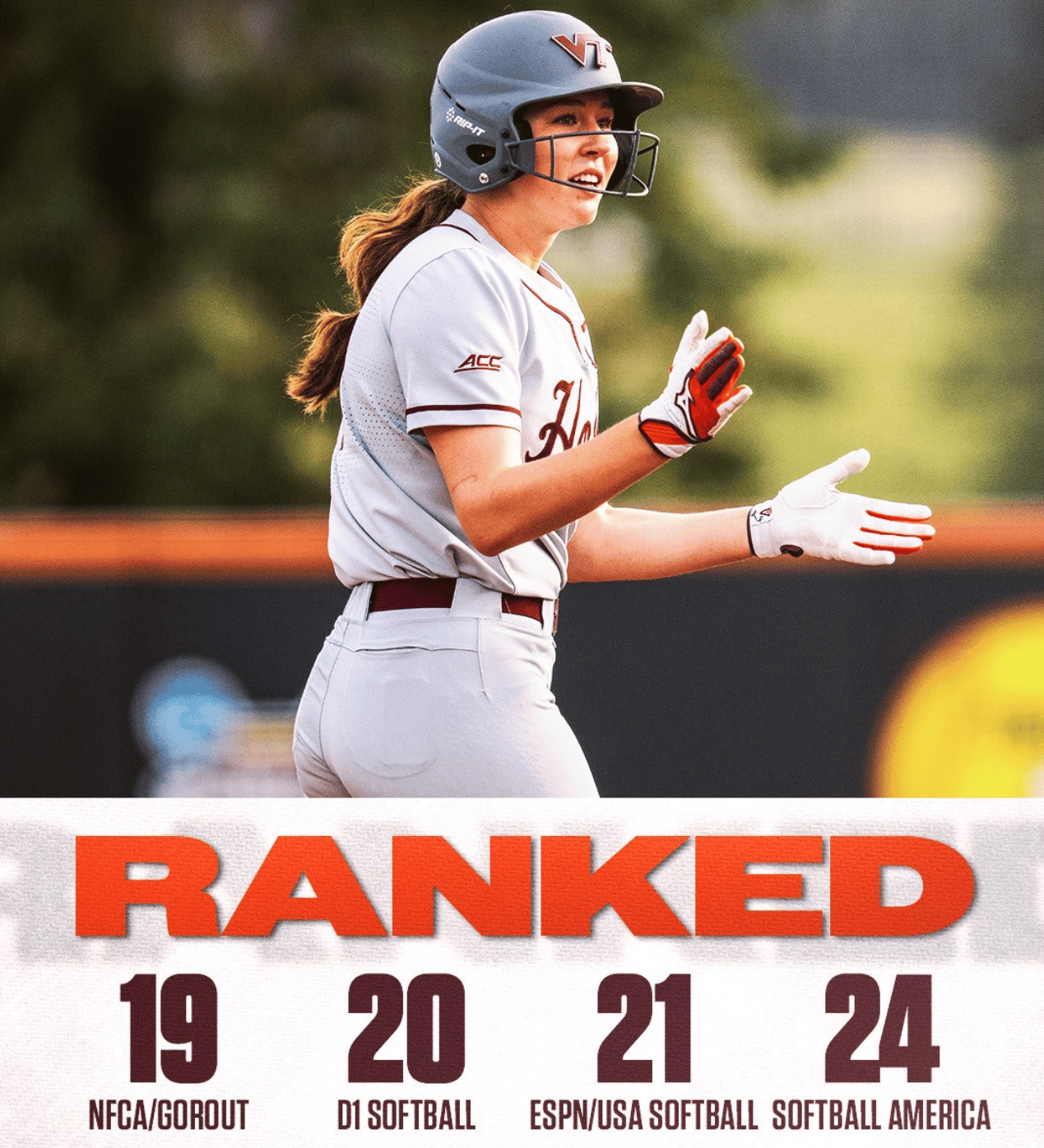 The Hokies were ranked in the top-25 in all four major preseason polls, including a high of #19 by the NFCA.