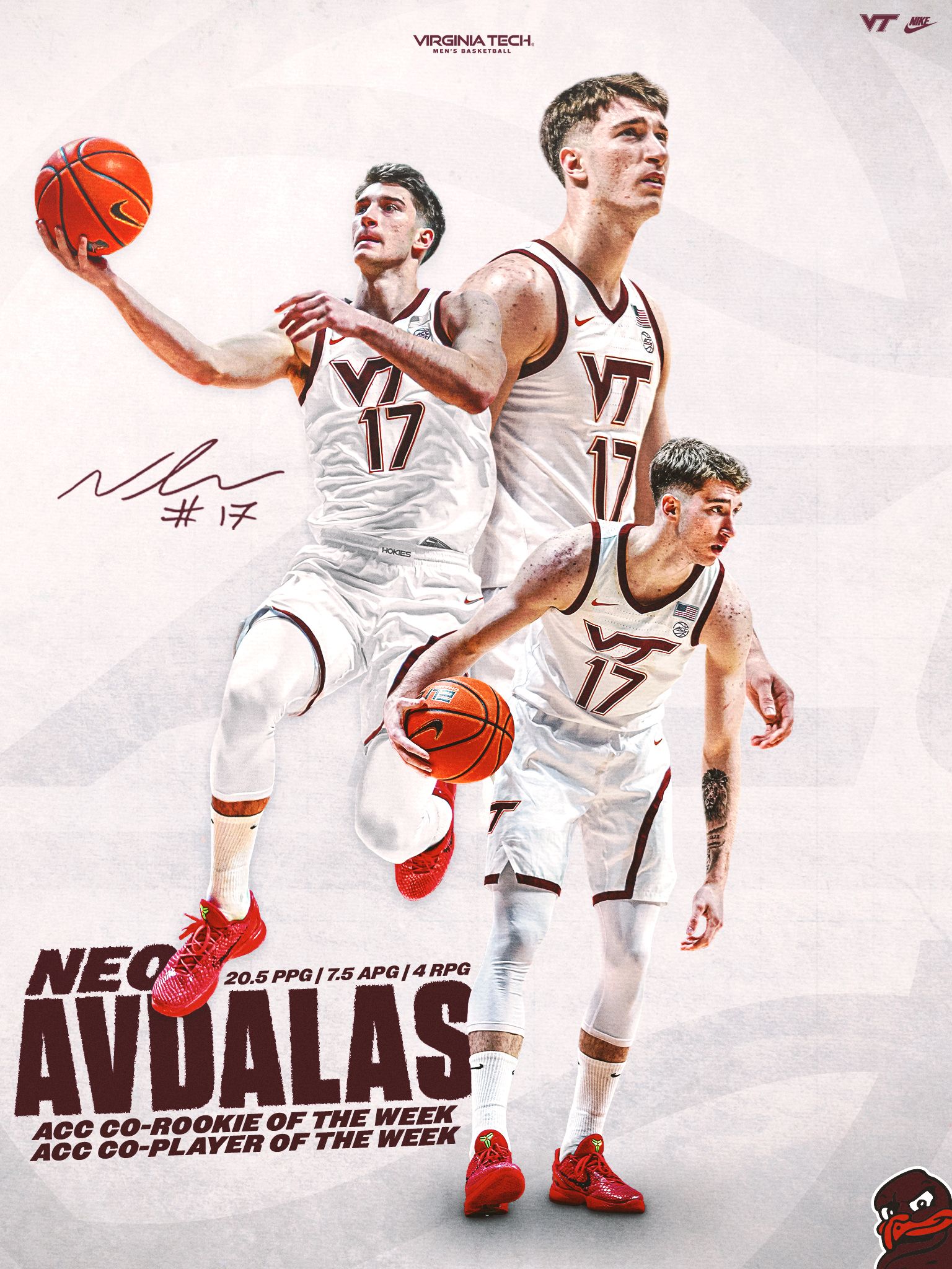 Virginia Tech freshman guard Neoklis Avdalas did exactly that and on Monday, was recognized as both the Co-Rookie and Co-Player of the Week, by the league office.