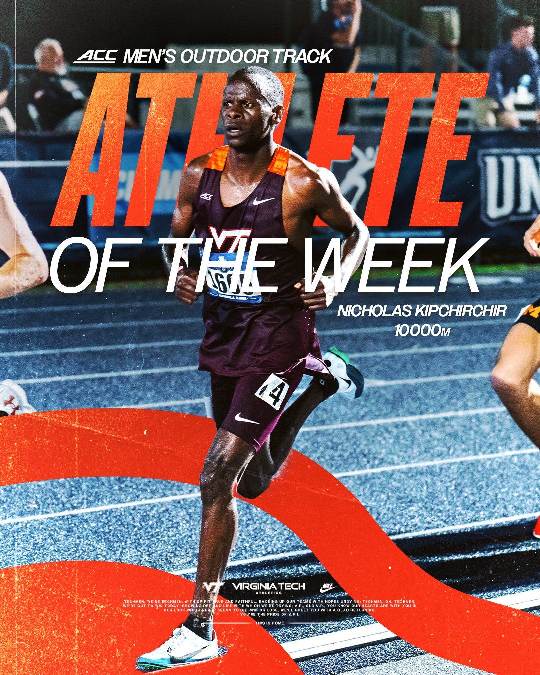 🔼 In The Nick Of Time. After a podium finish at the Raleigh Relays, Nicholas Kipchirchir was named ACC Men’s Outdoor Track Co-Athlete of the Week.